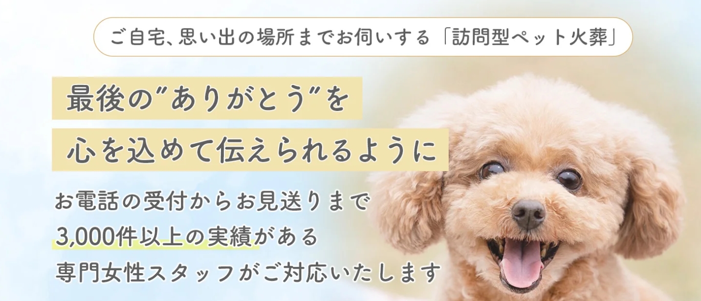 明確な料金案内や引き取り無料エリアの設定など、地域密着で安心して任せられるペット葬儀サービスを提供しています。