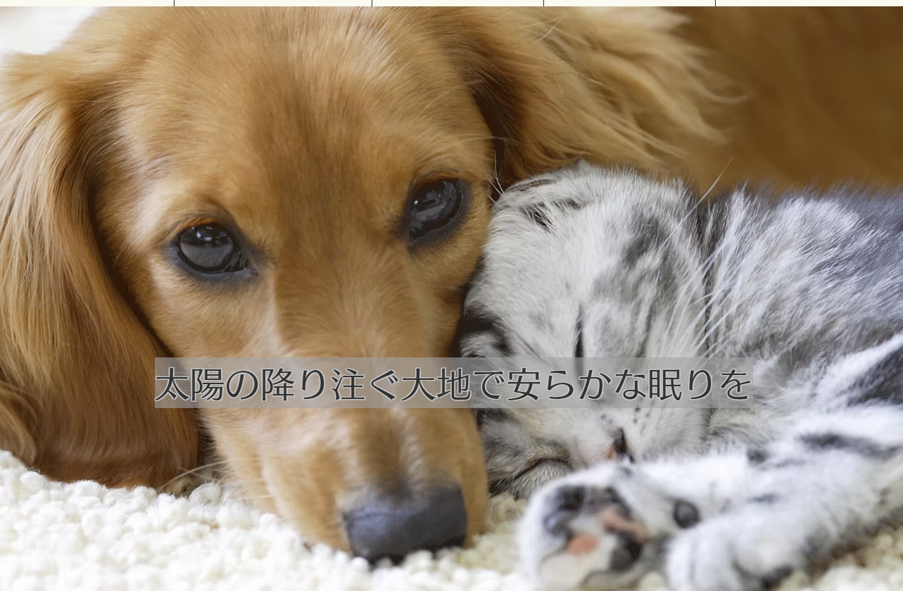 すべての動物を完全個別火葬でお見送りし、太陽の降り注ぐ大地の個別墓地で永眠の場を提供します。