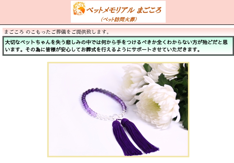ペットメモリアル まごころ(訪問ペット火葬サービス) は、千葉県松戸市を拠点に、ご自宅やご指定場所でのペット訪問火葬を丁寧にサポートするサービスです。