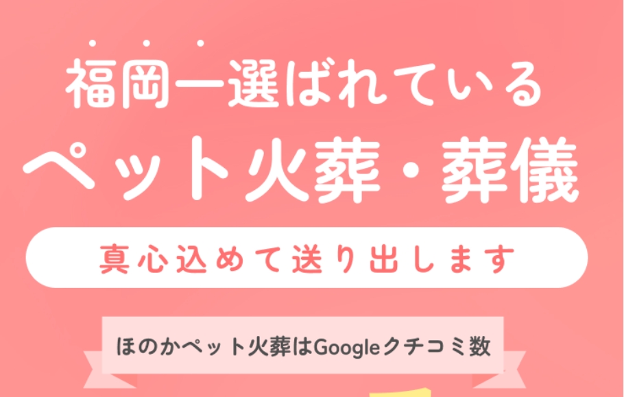 福岡市早良区にある歴史あるペット葬儀サービスで、斎場への来場火葬やご自宅へのお迎え対応など、ご家族の想いに寄り添ったお別れをお手伝いします。