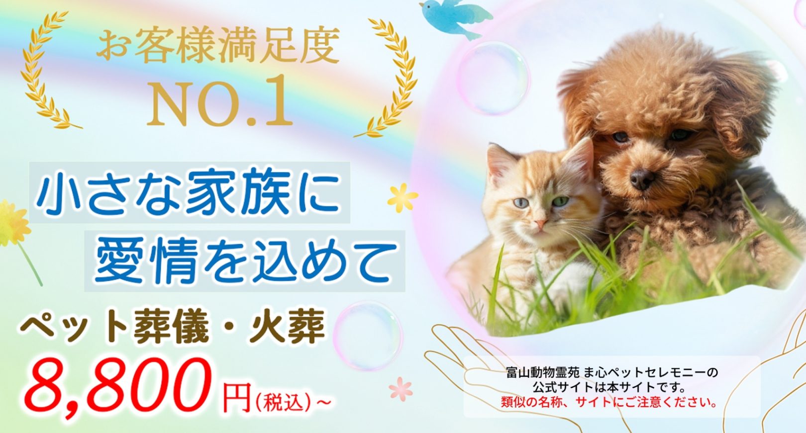 富山県内で昭和55年創業の実績あるペット葬儀・火葬・納骨・供養を心を込めて行う総合サービスです。