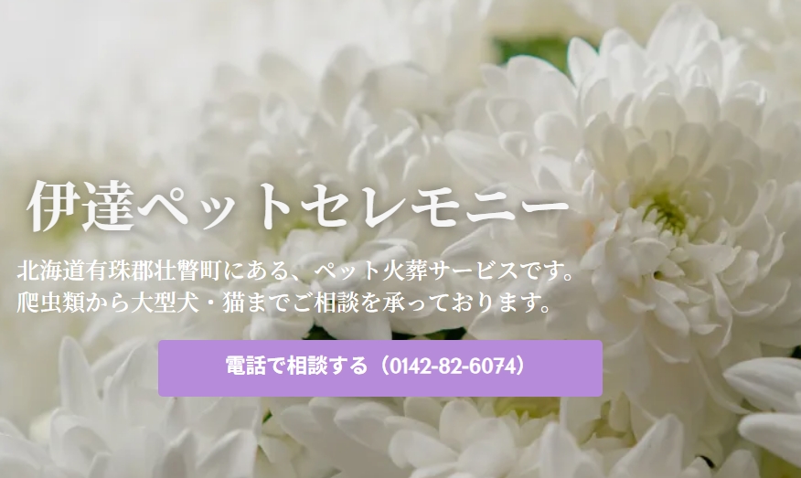 北海道有珠郡壮瞥町を拠点に、専用火葬車でご自宅やご指定場所へ伺い、犬・猫・爬虫類・大型動物まで対応した丁寧なペット火葬を心を込めてお手伝いします。