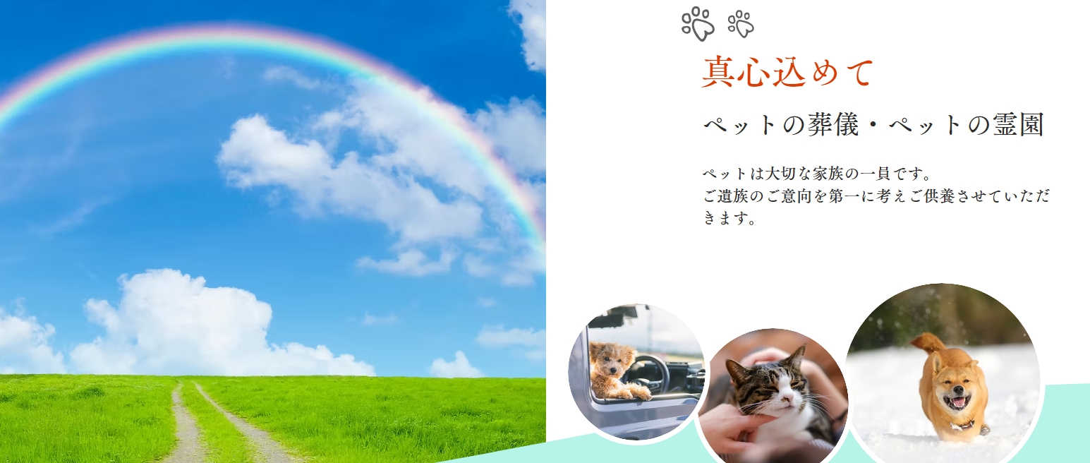 火葬は一任・立会・メモリアル葬など多彩なプランから選べ、大小さまざまなペットに対応し丁寧にお骨をお返しします。