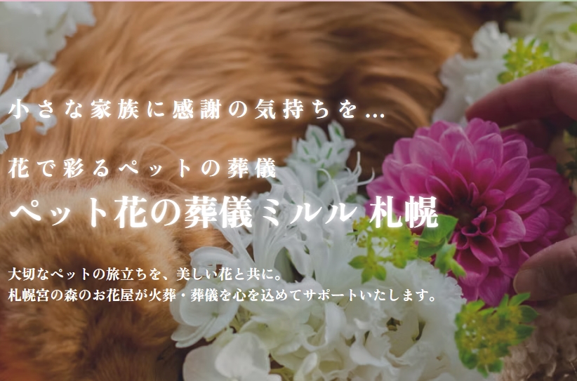 札幌宮の森のフローリストが、大切なペットとの最後の時間を花で彩る「花送り」セレモニーと丁寧な火葬・収骨まで心を込めてお手伝いします。