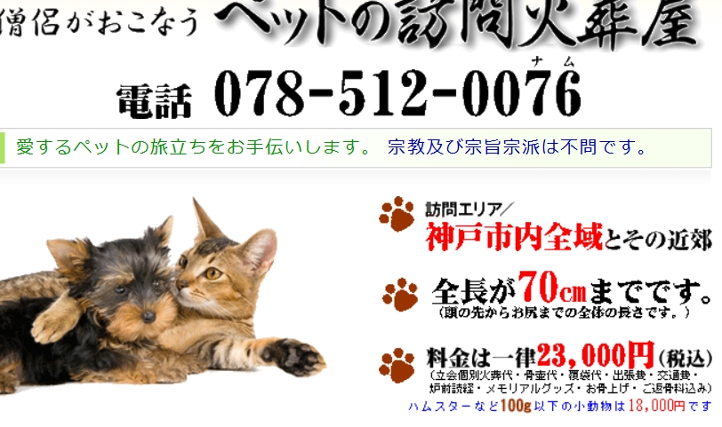 神戸市内全域と近郊に出張訪問し、僧侶が丁寧に執り行う個別ペット火葬・葬儀サービス。