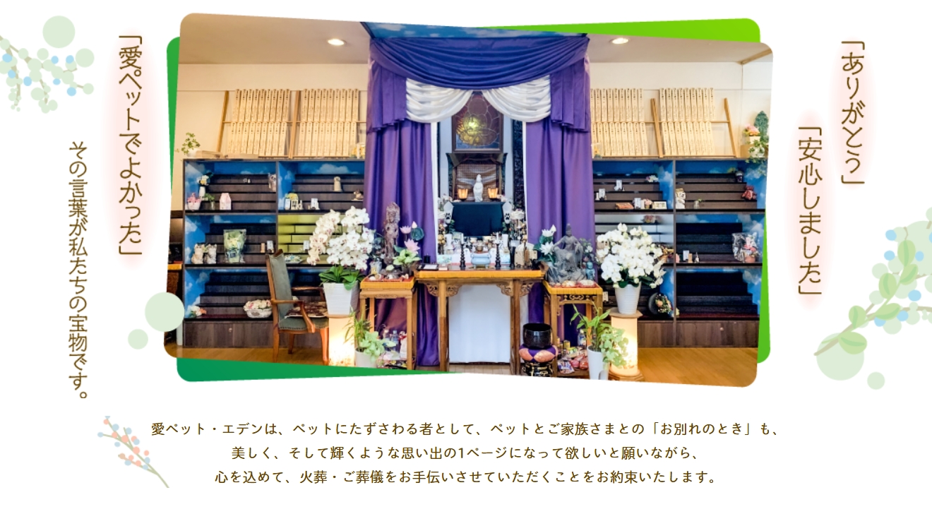 福岡県内を中心に24時間365日対応、火葬後の納骨・埋葬、月例法要や動物供養大祭などの供養サービスも充実しています。