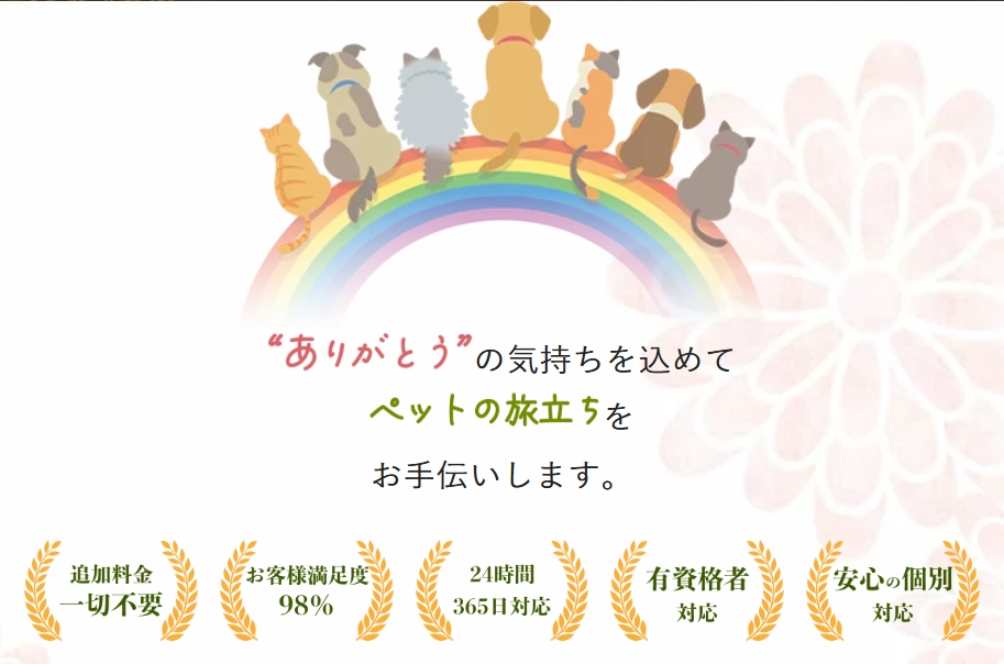 お別れの言葉やエピソードの共有、供養に関するコラム・ノウハウなど、心のケアを支えるコンテンツを多数掲載しており、ご家族が安心して大切なペットを見送る準備ができるよう丁寧に案内しています。