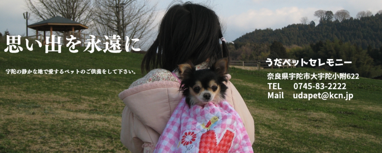 奈良県宇陀市にあるペット霊園「うだ・ペットセレモニー」。1000坪の敷地に納骨堂・個別墓地・合同墓地を備え、火葬から納骨まで一貫して対応しています。