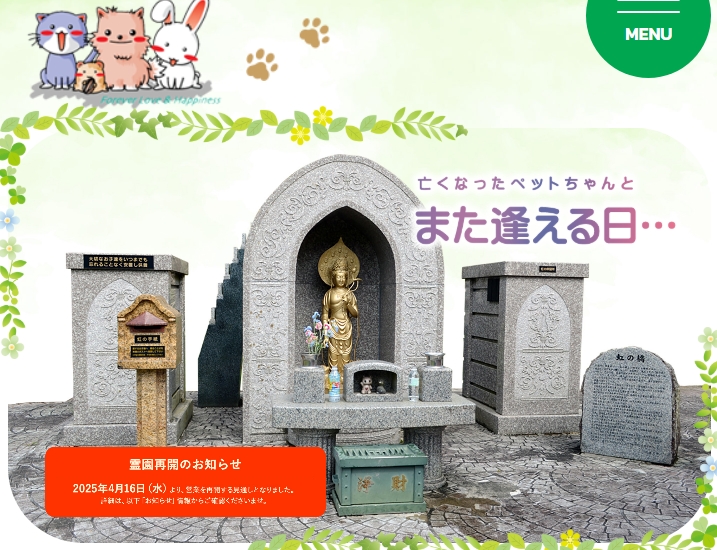 自然に囲まれた静かな環境の中で、感謝の気持ちを込めたお別れができる地域密着型のペットメモリアル施設です。