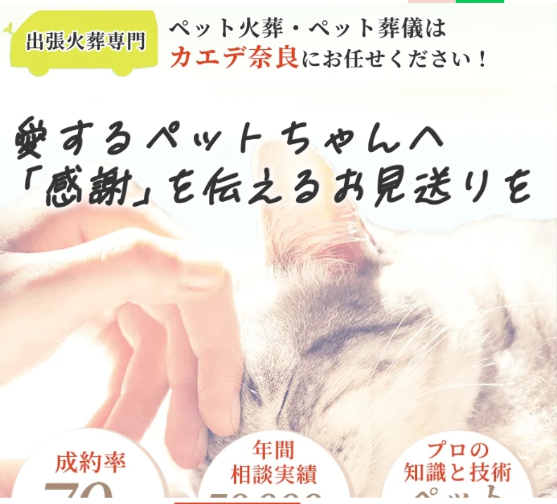 奈良・大阪・京都など広いエリアに対応し、明朗な総額料金で安心して依頼できるペット葬儀サービスです。