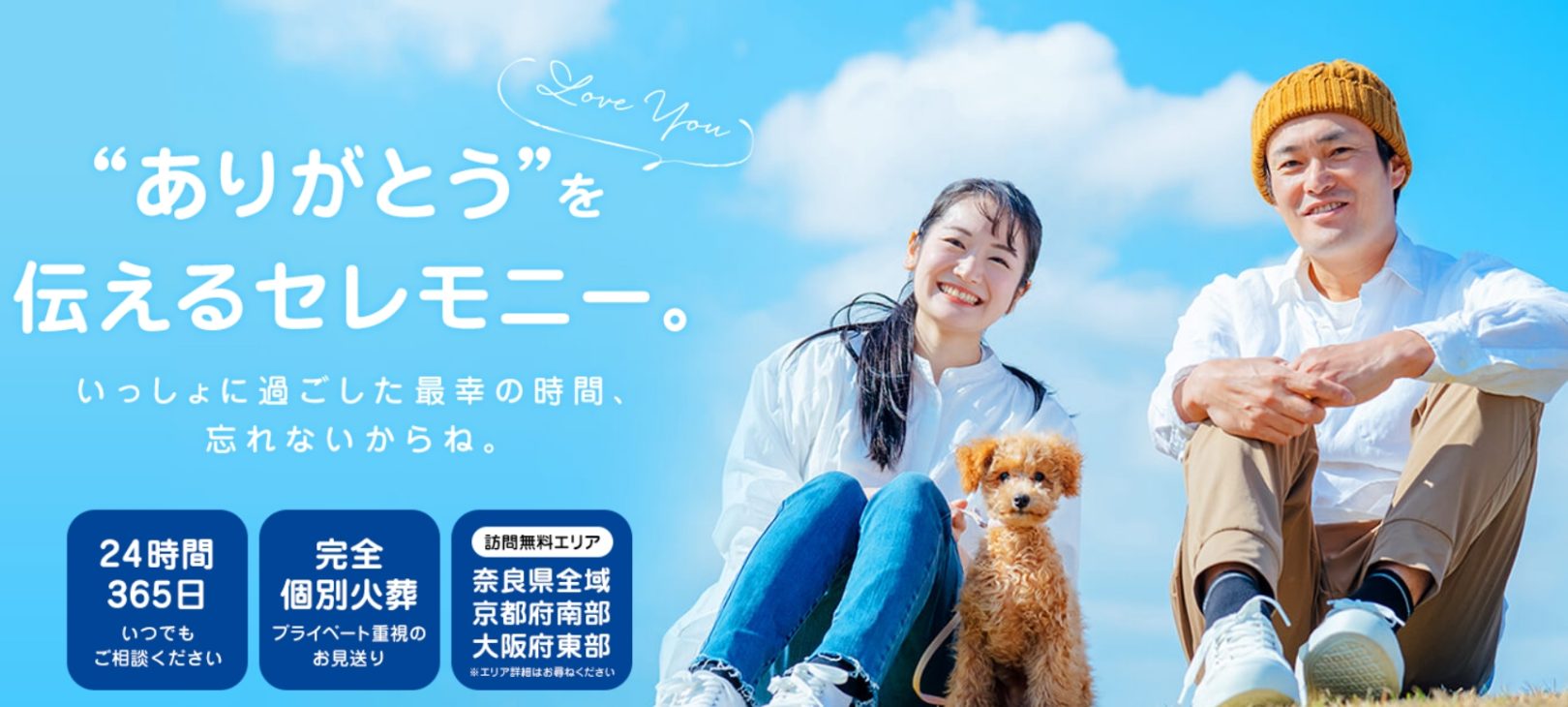 奈良・大阪・京都など広いエリアに対応し、明朗な総額料金で安心して依頼できるペット葬儀サービスです。