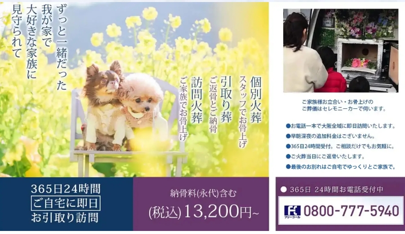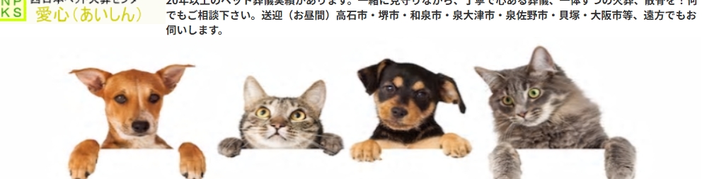大阪府堺市を拠点にする「ペットセレモニー愛心(NPKS愛心)」は、ペット火葬・葬儀・納骨・供養まで一貫対応する総合ペット葬儀社です。