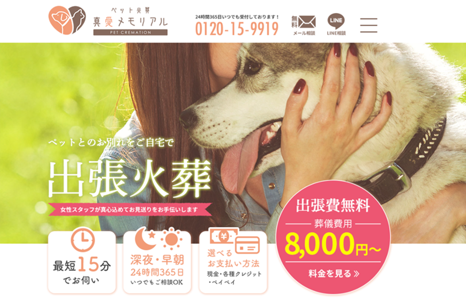 埼玉県川口市にあるペット火葬社「ペット火葬真愛メモリアル」では、24時間365日 出張火葬をお承りしております。火葬料金8,000円~。