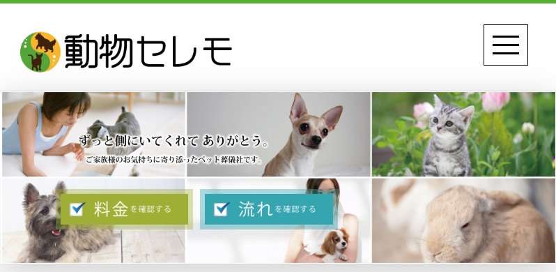 葬儀会館が運営するペット火葬・葬儀サービスで、斎場火葬と訪問火葬の両方に対応しています。