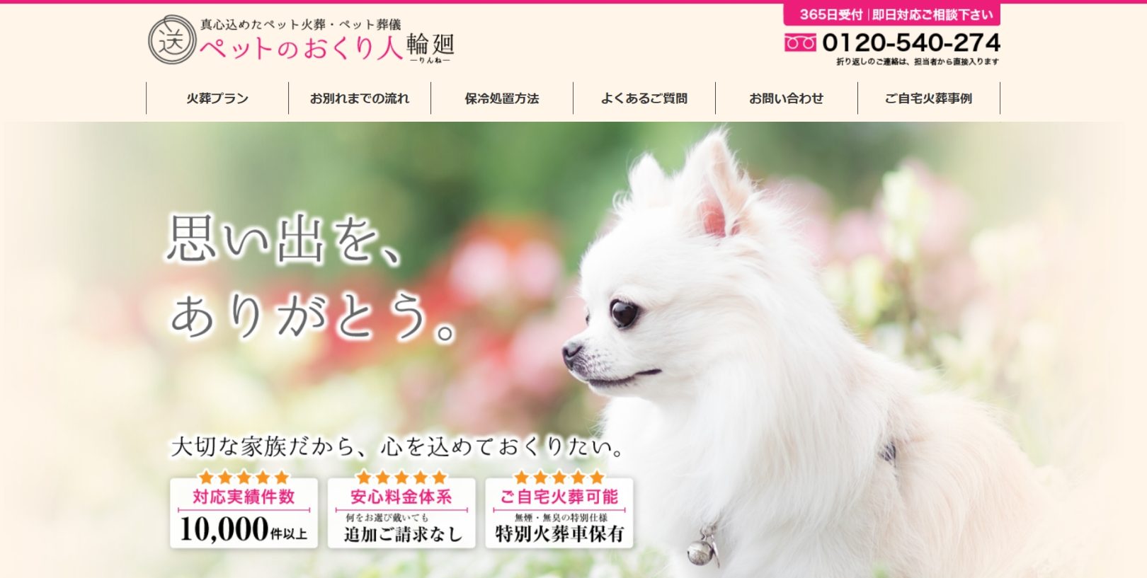 24時間365日対応・明確な料金と自社一貫対応で、安心して任せられるペット葬儀サービスを提供しています。