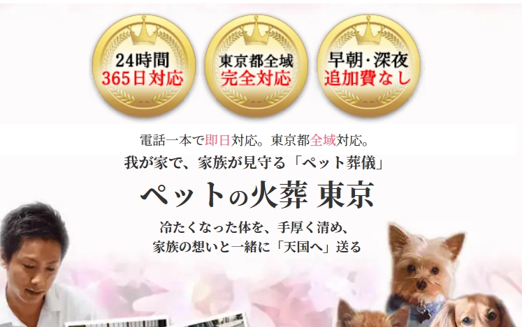 東京・神奈川・千葉・埼玉を中心に、訪問火葬でお見送りを行うペット葬儀専門サービス。