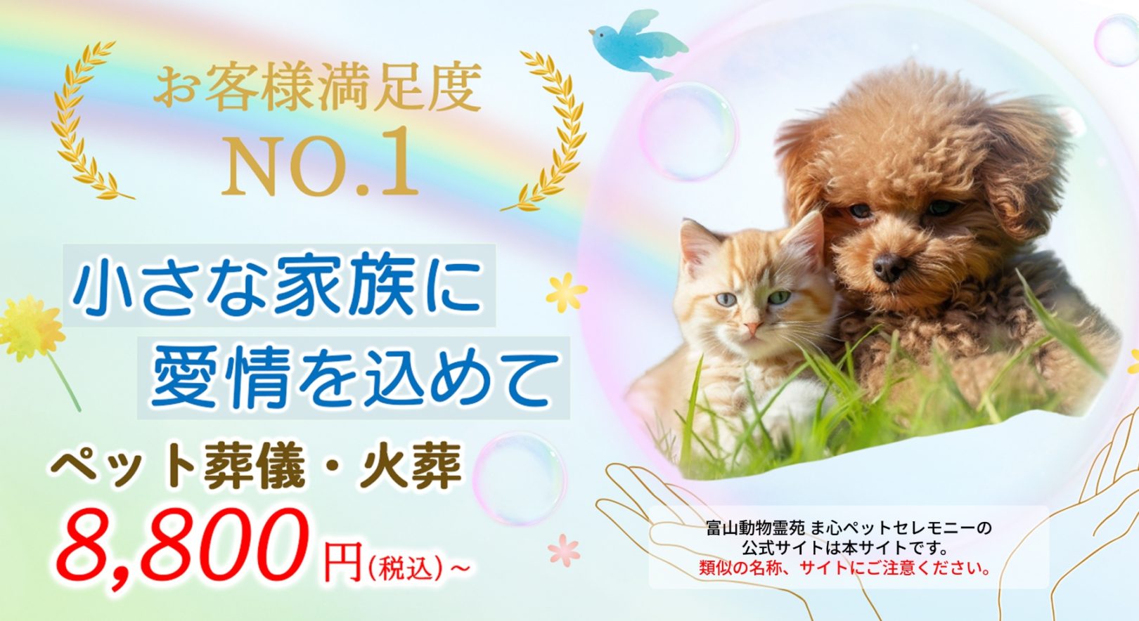 富山県内でペットの葬儀・火葬・納骨・供養を心を込めて行うペット葬儀サービスです。