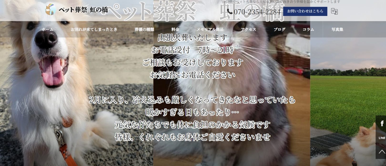 「ペット葬祭 虹の橋」は山口市に拠点を置き、山口県全域へ訪問対応するペット出張火葬サービスです。