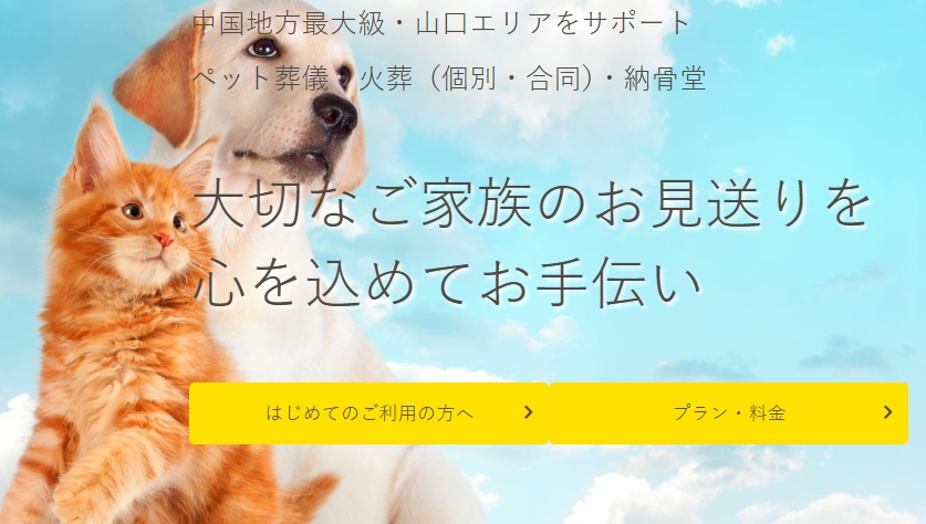 山口県岩国市・周南市・田布施町に斎場を持ち、葬儀・火葬・納骨まで対応する総合ペット葬祭サービスです。