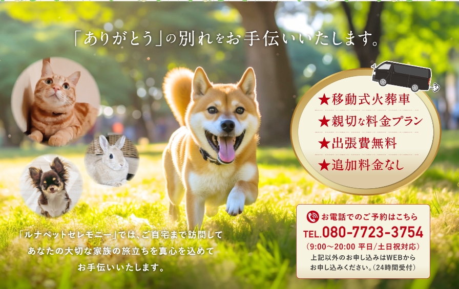 「ルナペットセレモニー」は山口県下関市を拠点に、県内各地へ訪問対応するペット出張火葬サービスです。