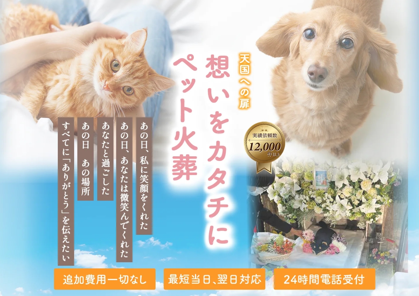 広島市を中心に広島県全域へ対応する、訪問型のペット火葬・葬儀サービスです。