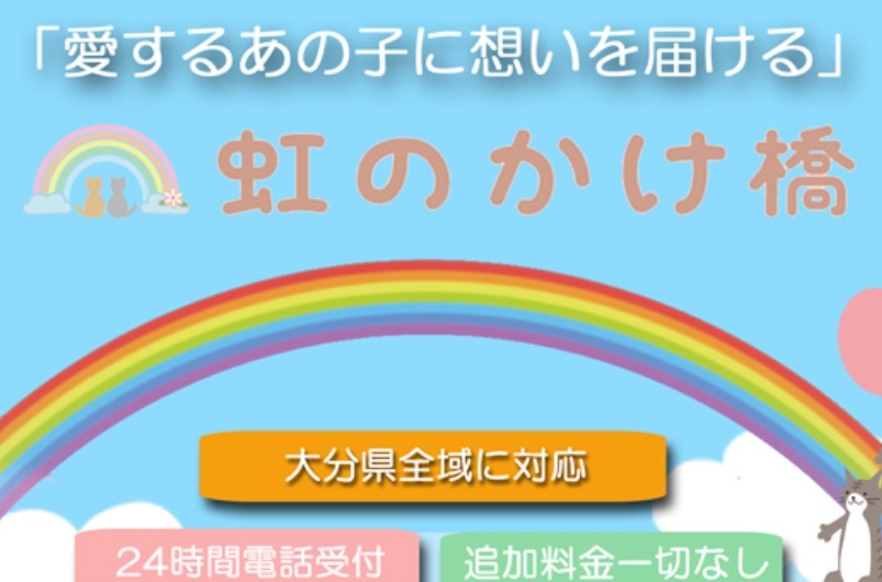 大分市内(光吉インターそば・大分東警察署そば)と豊後大野市に火葬施設を持ち、ご家族の都合に合わせて 無料コース・有料コースから選べるペット葬儀サービス を提供します。