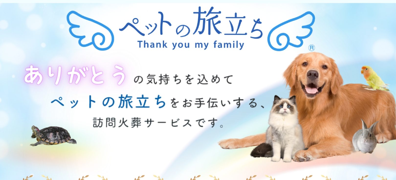 東京都を中心に、自宅訪問で火葬・葬儀を行う出張型ペット葬儀サービス。